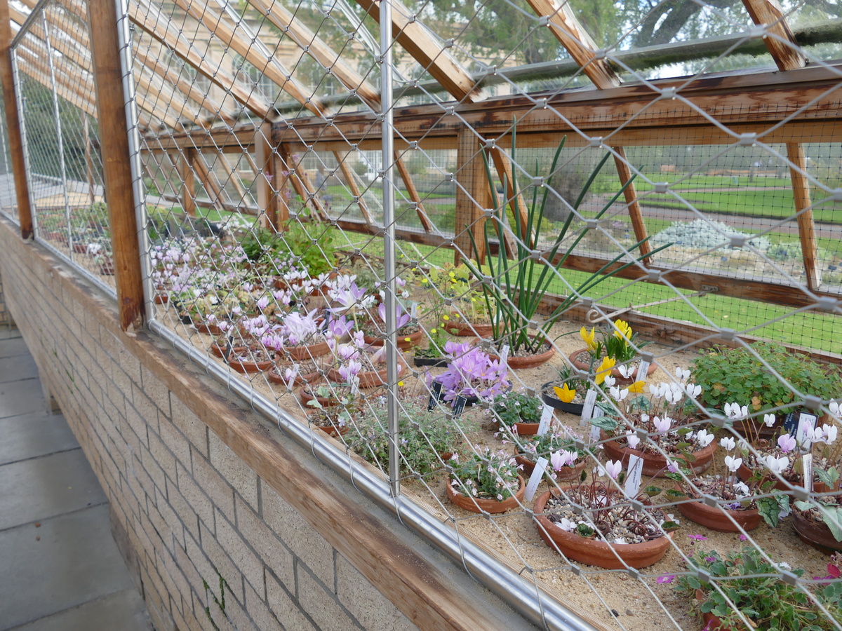 Watering should be reduced to almost nil during winter. "When in doubt, don't water" is a good maxim. If it is felt to be absolutely necessary, soak the pot from below in two inches of water for ten minutes. As soon as growth starts in the spring, the watering should be increased and from now on, during the growing season, the plant should never be allowed to dry out. Light shading in the form of Cool Glass (made by Bio) will be required during the summer. Here all plants, as they finish flowering, are plunged outside in suitable plunging materials. At all times, give as much ventilation as possible. A visit to the Alpine House at the RHS Gardens, Wisley, would be rewarding.